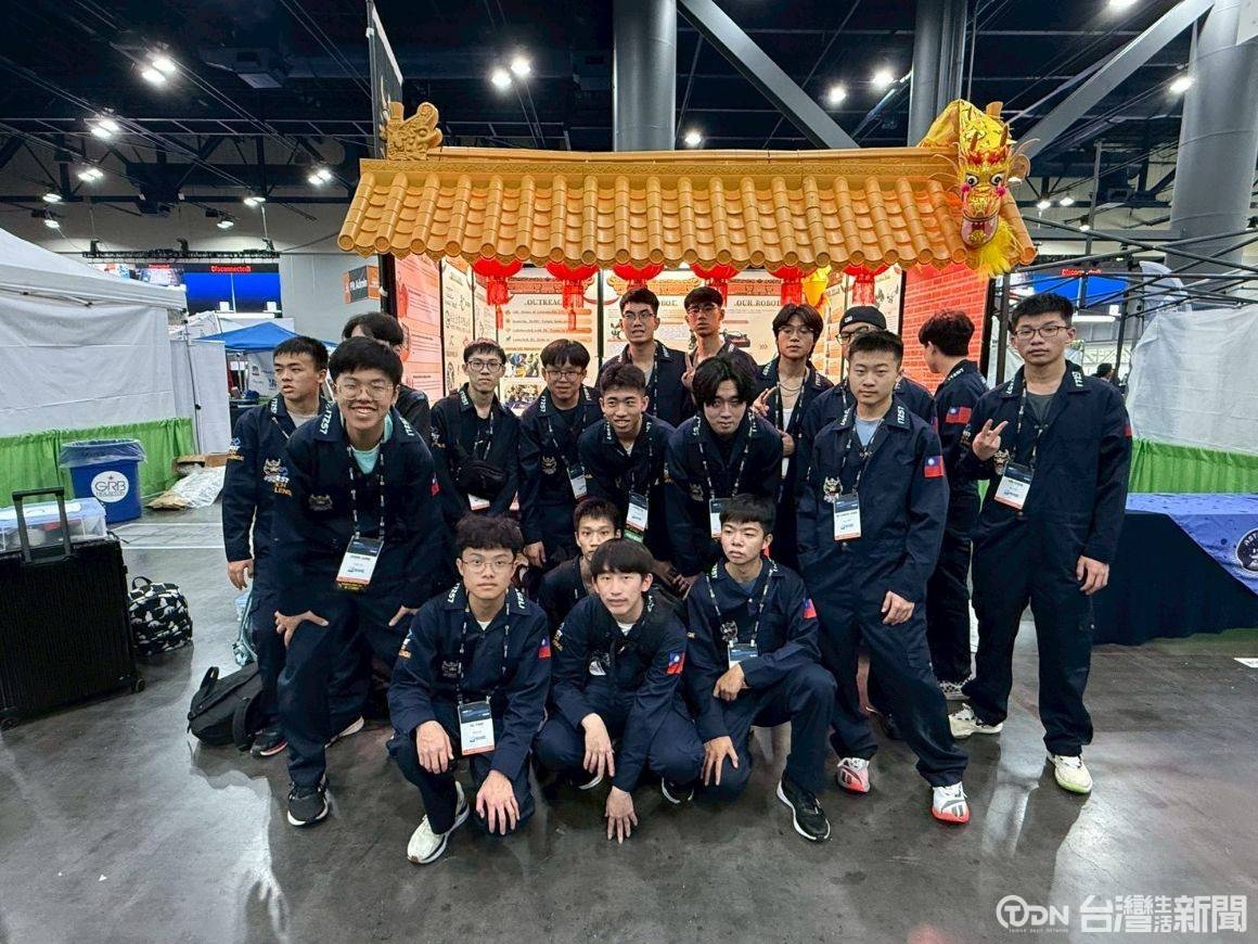 ▲由雲林、嘉義、台中、高雄、台南幾間學校學生組成的「17257 GoBuilder.GC」聯隊,日前至美國參與FTC世界機器人競賽,奪下設計獎第二名的佳績。畫面提供/粘振國