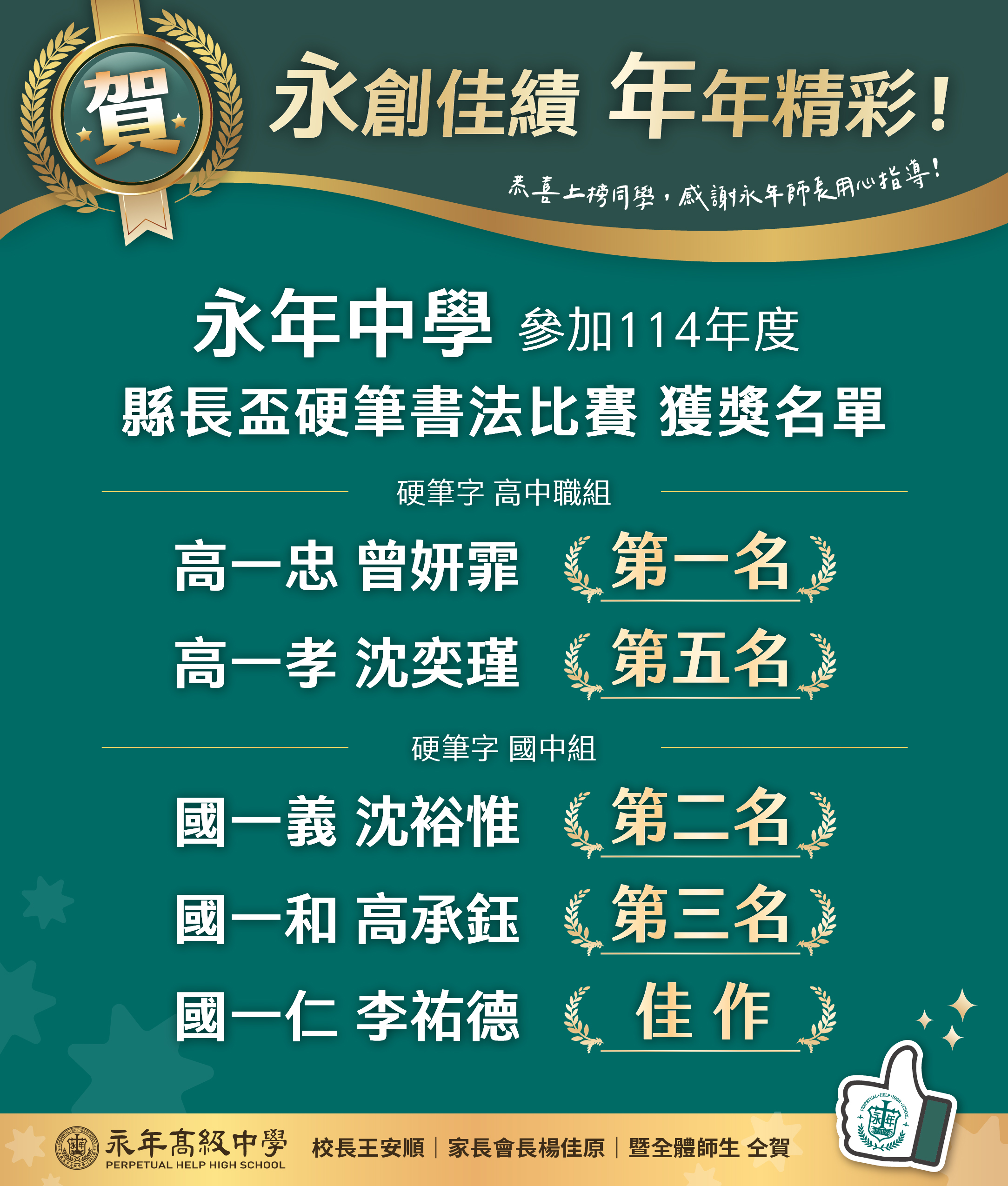 賀!永年中學參加縣長盃硬筆書法比賽獲得佳績!
